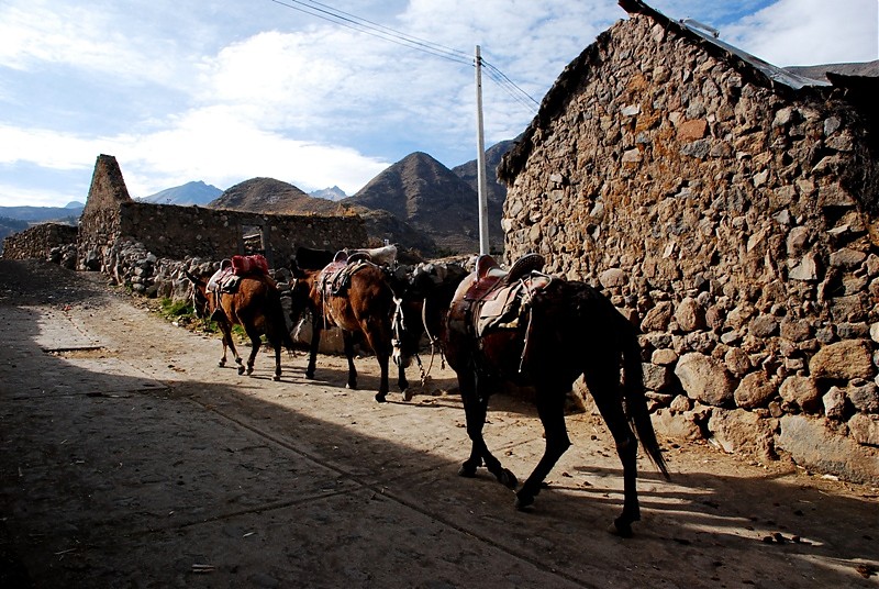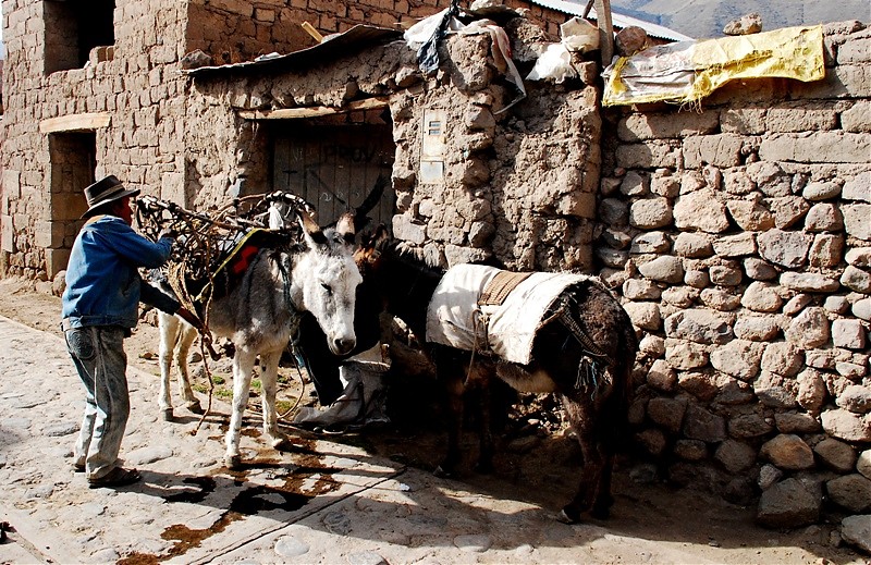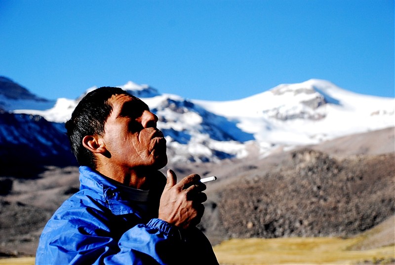 Ruszamy w czwórkowym teamie: Jarson, Remijio, osioł Tutti no i ja. Początkowo przez dolinę. Rozmawiamy o Juanicie, a Remijio opowiada o sobie i swojej rodzinie. Próbuję dopytać o składanie ofiar bo temat budzi we mnie mieszane uczucia. Trochę ciekawości, trochę strachu i trochę pobłażliwości. Remijo opowiada z pełną powagą o tym, że góry zawsze były czczone przez Inków i składano im ofiary. „Te góry nie rozumieją, że czasy się zmieniły i nadal czekają na ofiary” – mówi Remijio. „Jeśli nie dostaną ofiary, wezmą ją sobie same” – dodaje. Widząc pewnie na mojej twarzy niedowierzanie dodaje z jeszcze większym zaangażowaniem „…..tak, tak, to tak jak z tobą. Musisz jeść. Jak nie dostaniesz jedzenia będziesz głodna. Tak samo góra jest głodna ofiar”. Fascynuje mnie ale też bawi tak konkretne myślenie Indian. Mnie nieco bawi ale widać, że Remi naprawdę się boi. Mam chwilowo dość tej filozofii i do czasu aż docieramy do obozu nie kontynuuję dyskusji. Remi co jakiś czas zakopuje liście koki przy drodze i wymawia różne zaklęcia. Wiem jednak, że tak już będzie przez najbliższe kilka dni.