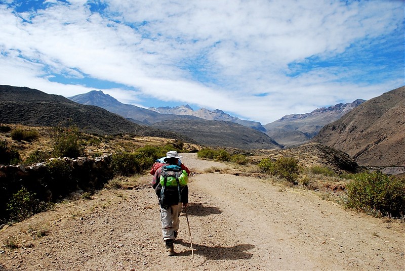 Poszukiwane informacji na jej temat niestety coraz bardziej oddalało mnie od tego pomysłu, bo wszelkie znajdowane informacje mówiły o wejściach na szczyt od strony wschodniej od wioski Salali, dziś łatwiejszej, bardziej przyjaznej, krótszej…….ale mniej magicznej. I wreszcie kiedy przyjechaliśmy do Arequipy w Peru pojawiły się realne możliwości weryfikacji wszelkich zasłyszanych opinii. Znowu to samo. Brak nadziei na zdobycie informacji o drodze Inków, która prowadzi od zachodniej strony. Wiemy tylko, że droga ma swój początek w wiosce Cabanaconde i właśnie tam się udajemy. Przypadek sprawia, że poznajemy Remijio. Mieszkańca wioski, który zna okolicę. Jest Indianinem Keczua. Po hiszpańsku mówi słabo ale udaje nam się dogadać. Remijio ma pójść z nami i pokazać drogę Inków. Mieszkańcy wioski nie tylko dumni są z tego, że są potomkami Inków ale wierzą też, że Juanita pochodziła właśnie z Cabanaconde, choć naukowcy nie potwierdzają tych przypuszczeń. Rodzina Remijio do dziś praktykuje inkaskie obrzędy i wierzy w inkaskich bogów. Ponad 80 letnia matka Remijio przed wyjściem drżącym głosem mówi coś co brzmi jak modlitwa. Nie rozumiem, bo to keczua ale Remi później wyjaśnia, że prosiła abyśmy wciąż trzymali się razem i ani na chwilę nie rozdzielali. Dla bezpieczeństwa.