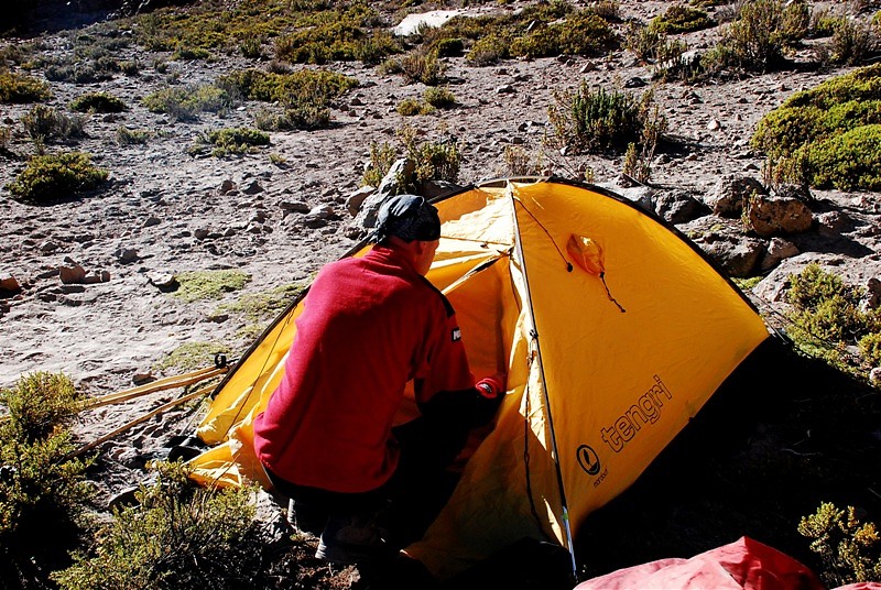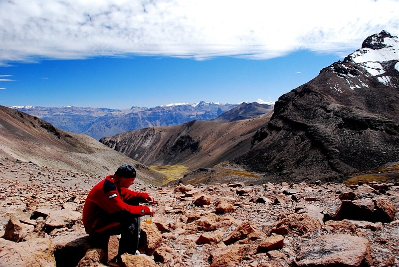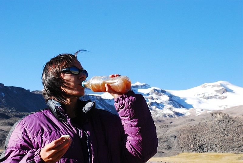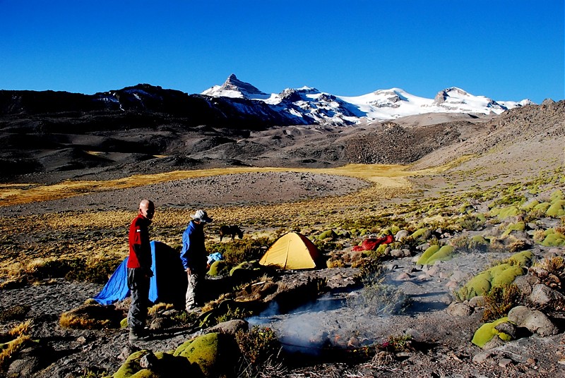 Wreszcie po 6 godzinach docieramy do campo Paccha Pata. Jest u stóp góry Hualca Hualca. Góra jest piękna a jej nazwa w języku keczua oznacza „kobietę, która ma dużo wody”. Remi ma wyraźne zapędy dyktatorskie bo na kolacje gotujemy tylko zupę i choć nadal jestem głodna Remi zarządza, że idziemy spać. Mój wzrok spotyka się ze wzrokiem Jarka. Na twarzy widzę uśmiech niedowierzania pomieszany z żalem. Chyba jednak nie mam ochoty na przepychanki o kolejny talerz jedzenia. To był długi dzień, więc chowam się w swoim śpiworze. Zanim zasypiam słyszę jeszcze złośliwe uwagi Jarsona „trzeba było wyrzucić jeszcze więcej jedzenia i zabrać więcej koki albo tłuszczu wikunii”, „w ogóle idźmy tylko na liściach koki” – dodaje Jarson a ja niestety myślę, że to bardzo prawdopodobne ;).