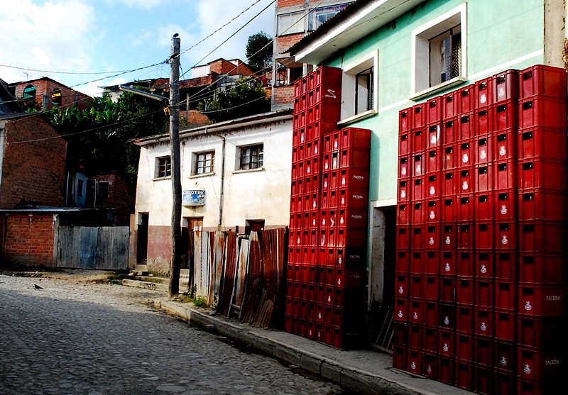 W pierwszej lokalnej kafejce zamawiamy herbatę. Jest ponuro jak we wszystkich tego typu miejscach i czuje zapach słodkiej, gotowanej marchwi. Zbliża się pora obiadu która tłumaczy ten zapach. Czekam aż zaparzą się liście koki i przyglądam się sąsiadowi który siedzi obok przy nakrytym niezbyt czystym obrusem w kratkę stoliku. Pociąga nosem i pociera ręką czerwoną od zimna twarz. Uśmiecham się do niego a on choć odwzajemnia uśmiech natychmiast odwraca wzrok. Miesza łyżeczką swoją kawę, oblizuje ją po czym pakuje do cukiernicy i wsypuje do kawy 3 czubate łyżki cukru.