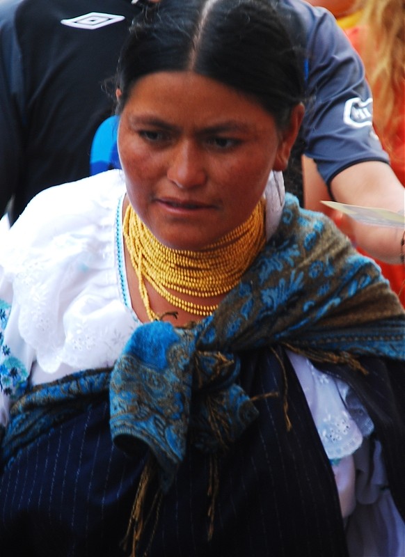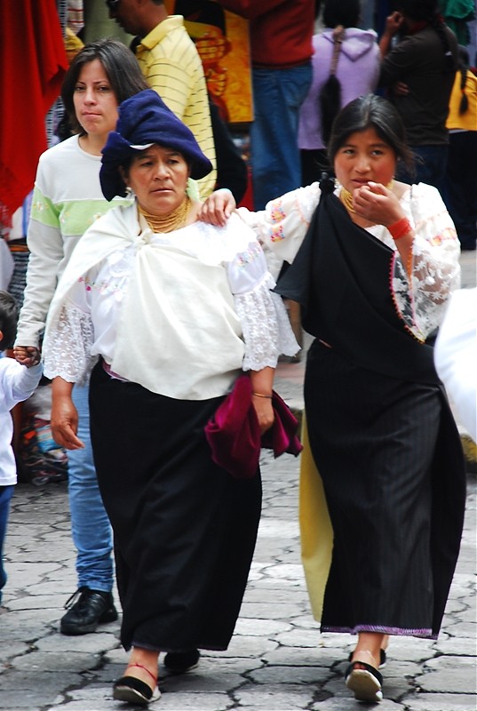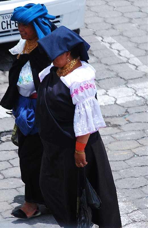 Szczęśliwie jednak mieszkańcy Otavalo wciąż noszą tradycyjne ubrania. Mężczyźni zakładają niebieskie poncho, białe spodnie długości dlugosci ¾ z ciemnymi paskami. Nie może zabraknąć oczywiście filcowego kapelusza spod ktorego wystaje dlugi, kruczoczarny warkocz. Kobiety noszą białe, często wyszywane bluzki i niebieskie spódnice. Ważnym elementem jest biżuteria. Kilka zlocistych sznurów owija kobiece szyje a czerwone bransoletki oplecione sa wokół dłoni. Do tego typowe nakrycie głowy.