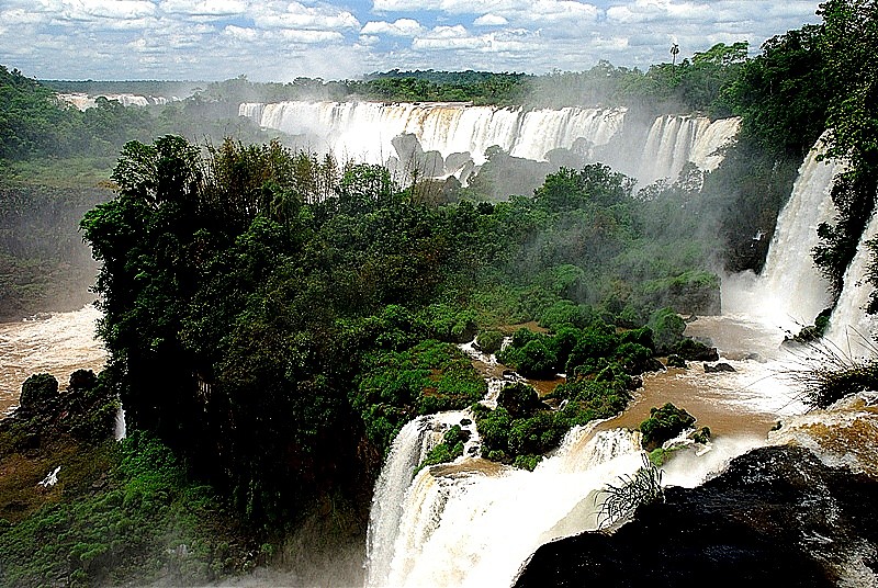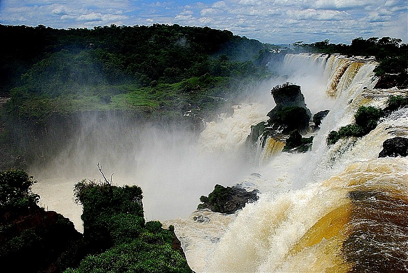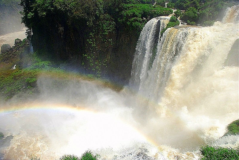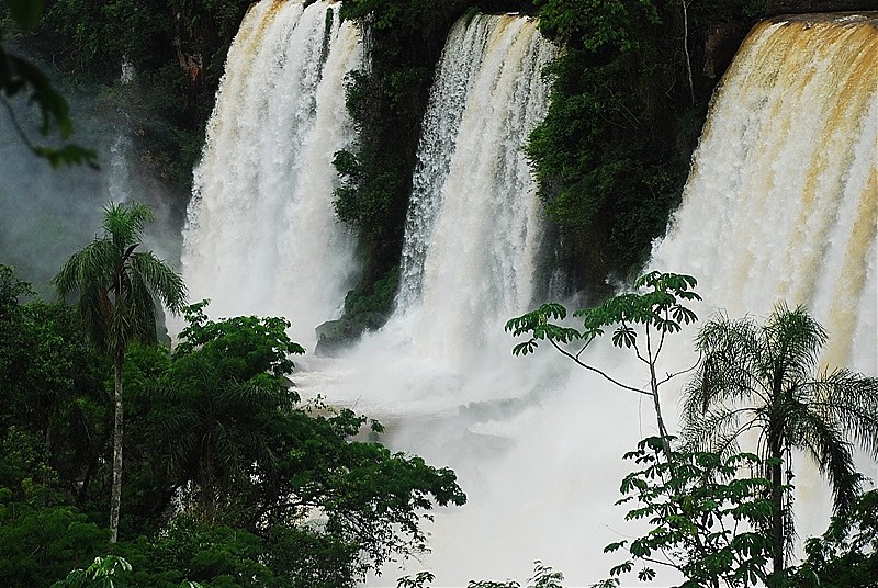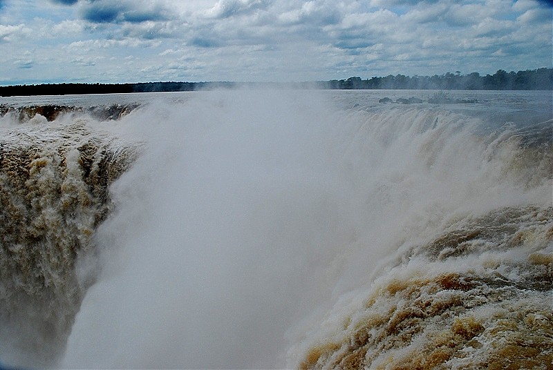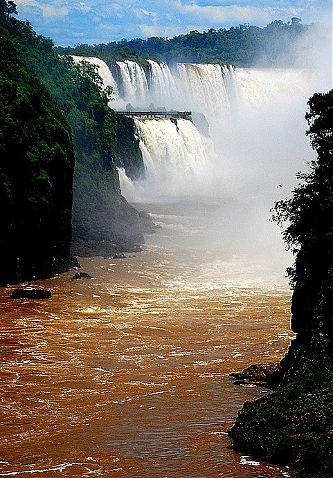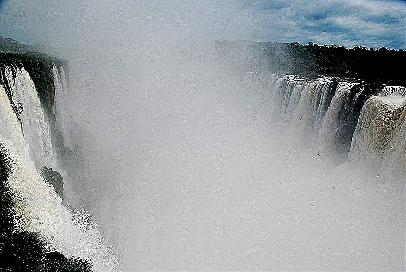 275 progów przez które w każdej sekundzie przelewa się 2 miliony metrów sześciennych wody. Woda z wielkim hukiem wpada w bezkresną otchłań rozpryskując się na miliony drobnych kropel, które odbijając światło tworzą przepiękne tęcze.